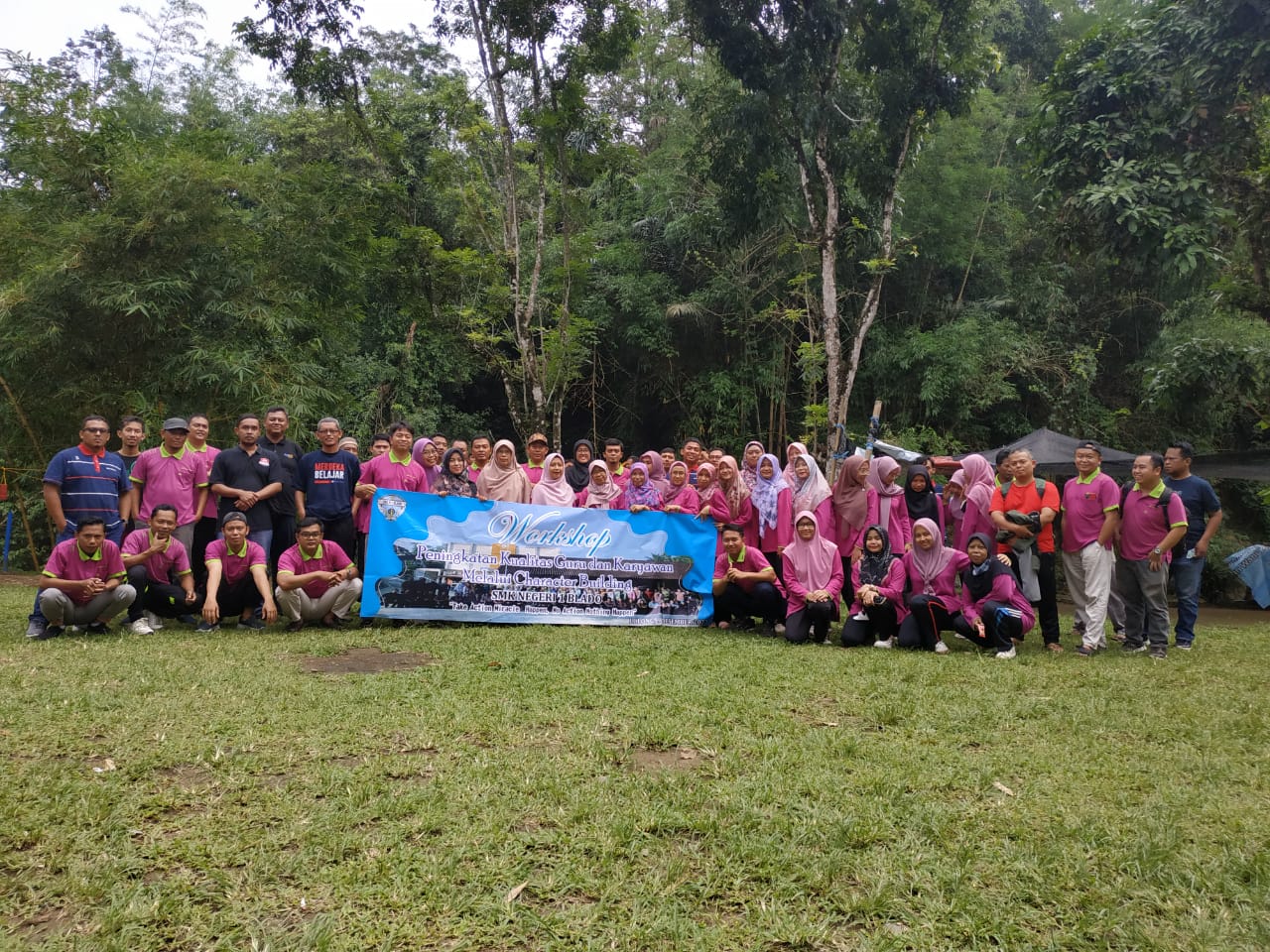 Aktivitas pertama yaitu pemberian sesi motivasi oleh instruktur dari Lolong Adventure yaitu Bapak Nadlirin. Beliau menyampaiakan manfaat dan tujuan dari workshop hari ini yaitu membangkitkan kemauan dan keyakinan untuk berubah sehingga terciptanya motivasi yang sangat kuat dari dalam diri untuk melakukan perubahan pada dirinya. Aktivitas berikutnya yaitu kegiatan outbond yang dibagi dalam beberapa permainan. Yang pertama yaitu permainan konsentrasi dengan nama TUGU PANCORAN yang merupakan simulasi outbond ICE BREAKING untuk meleburkan suasana antara bapak/ibu guru dan karyawan. Tidak hanya itu, konsentrasi dalam permainan ini sangat berperan dalam menganalisa perintah yang diberikan dan harus cepat menyelesaikan perintah yang diberikan. Permainan berikutnya dimainkan dalam kelompok yaitu melatih kekompakan dan strategi dengan mengunakan matras puzzle. Setiap kelompok hanya diberikan 5 puzzle dan seluruh peserta harus berjalan di atas puzzle tanpa keluar batas sampai ke titik tujuan. Permainan ini melatih kita untuk bersikap anti bullying dengan fokus pada tujuan bersama tanpa menjatuhkan orang lain. Beberapa permainan lain yaitu memindahkan air menggunakan pipa berlubang hingga bola pimpong yang berada di tabung keluar, memindahkan bola tenis menggunakan tali, opposite jump, dll.