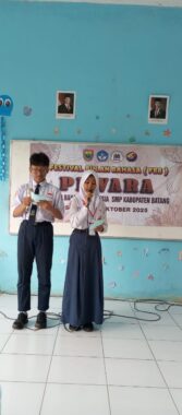 Blado, 28 Oktober 2025 — Dua guru SMK Negeri 1 Blado, Bapak I Gede Arga Anggara, S.Pd. dan Ibu Sunarni, S.Pd., mendapat kepercayaan menjadi dewan juri pada ajang Festival Bulan Bahasa yang diselenggarakan oleh MGMP Bahasa Inggris dan Bahasa Indonesia Kabupaten Batang. Kegiatan ini berlangsung di SMP Negeri 1 Blado pada Selasa, 28 Oktober 2025.