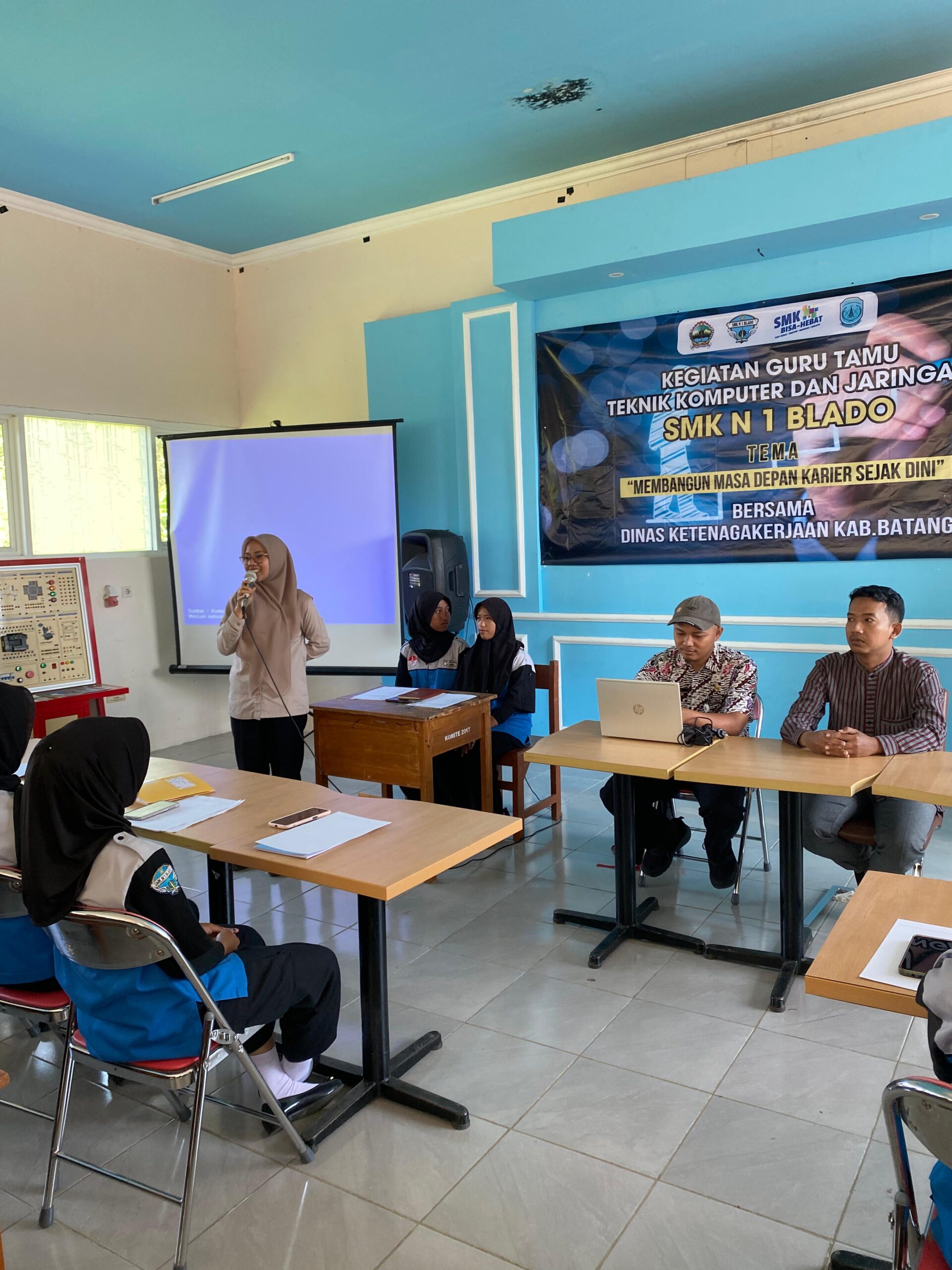 Dalam rangka memberikan pembekalan kepada peserta didik mengenai dunia kerja dan perencanaan karier, SMK N 1 Blado menyelenggarakan kegiatan bertajuk “Refleksi dan Rencana Karier Siswa”. Narasumber dalam kegiatan ini adalah Kisron, S.ST., M.T., Kom. dari UPTD BLK Batang, Dinas Ketenagakerjaan Kabupaten Batang.
