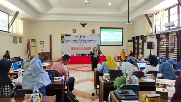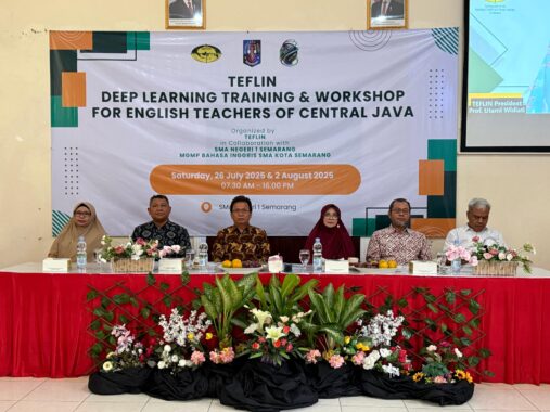 SEMARANG – Selama dua pekan berturut-turut, tepatnya pada Sabtu, 26 Juli dan 2 Agustus 2025, digelar pelatihan dan workshop bertajuk “TEFLIN Deep Learning Training & Workshop for English Teachers of Central Java.” Pelatihan yang mengusung tema “Empowering English Teachers” ini merupakan bagian dari rangkaian pelatihan nasional yang sudah dimulai TEFLIN sejak Mei lalu dan diperuntukkan bagi para guru Bahasa Inggris di seluruh Indonesia.