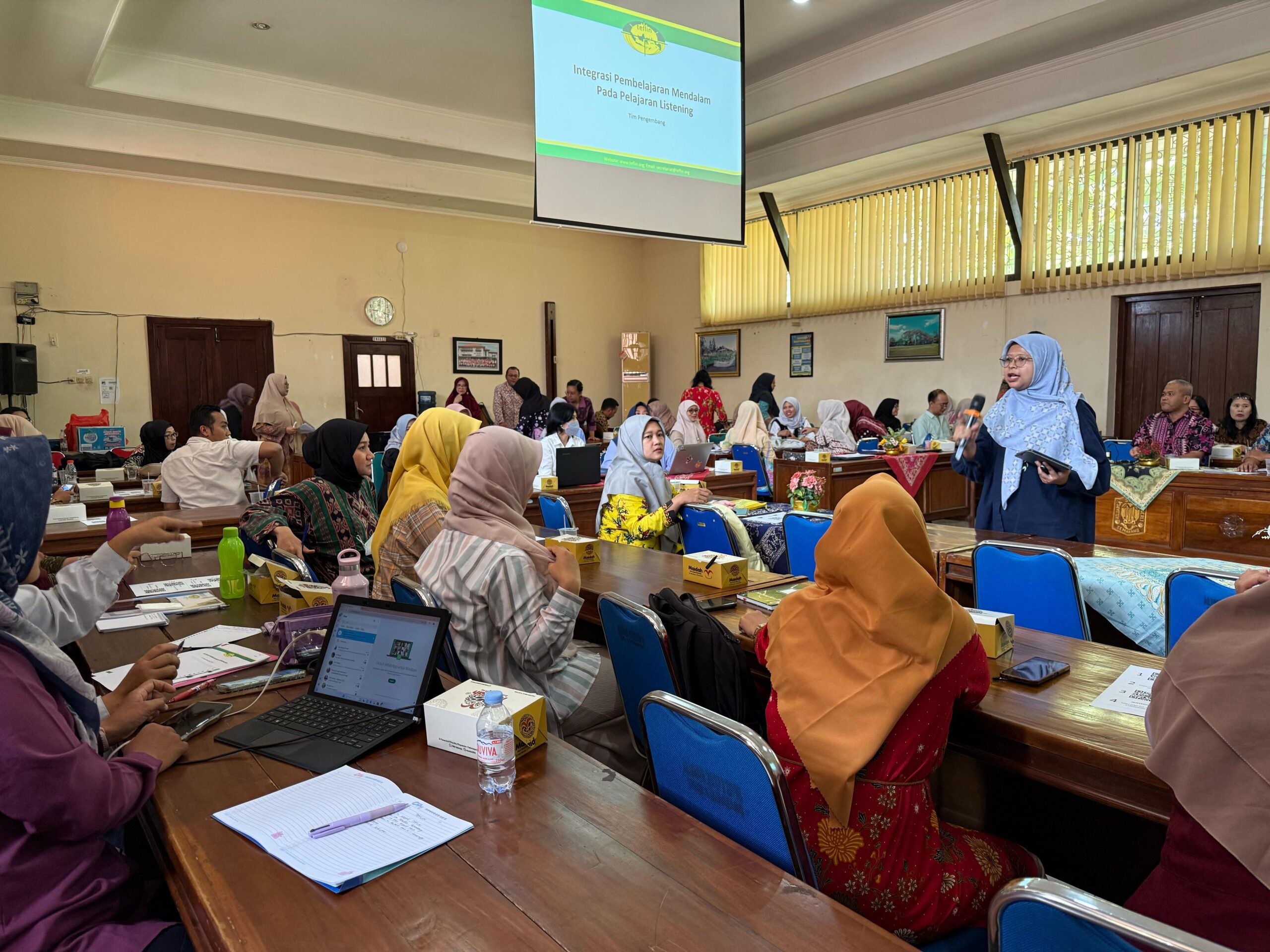 Tujuan utama dari kegiatan ini adalah untuk meningkatkan profesionalisme guru Bahasa Inggris, khususnya dalam menerapkan pendekatan Pembelajaran Mendalam (Deep Learning) di kelas. Pelatihan dirancang secara praktis agar para peserta bisa langsung merancang dan mempraktikkan model pembelajaran ini pada empat keterampilan utama: mendengarkan, berbicara, membaca, dan menulis.