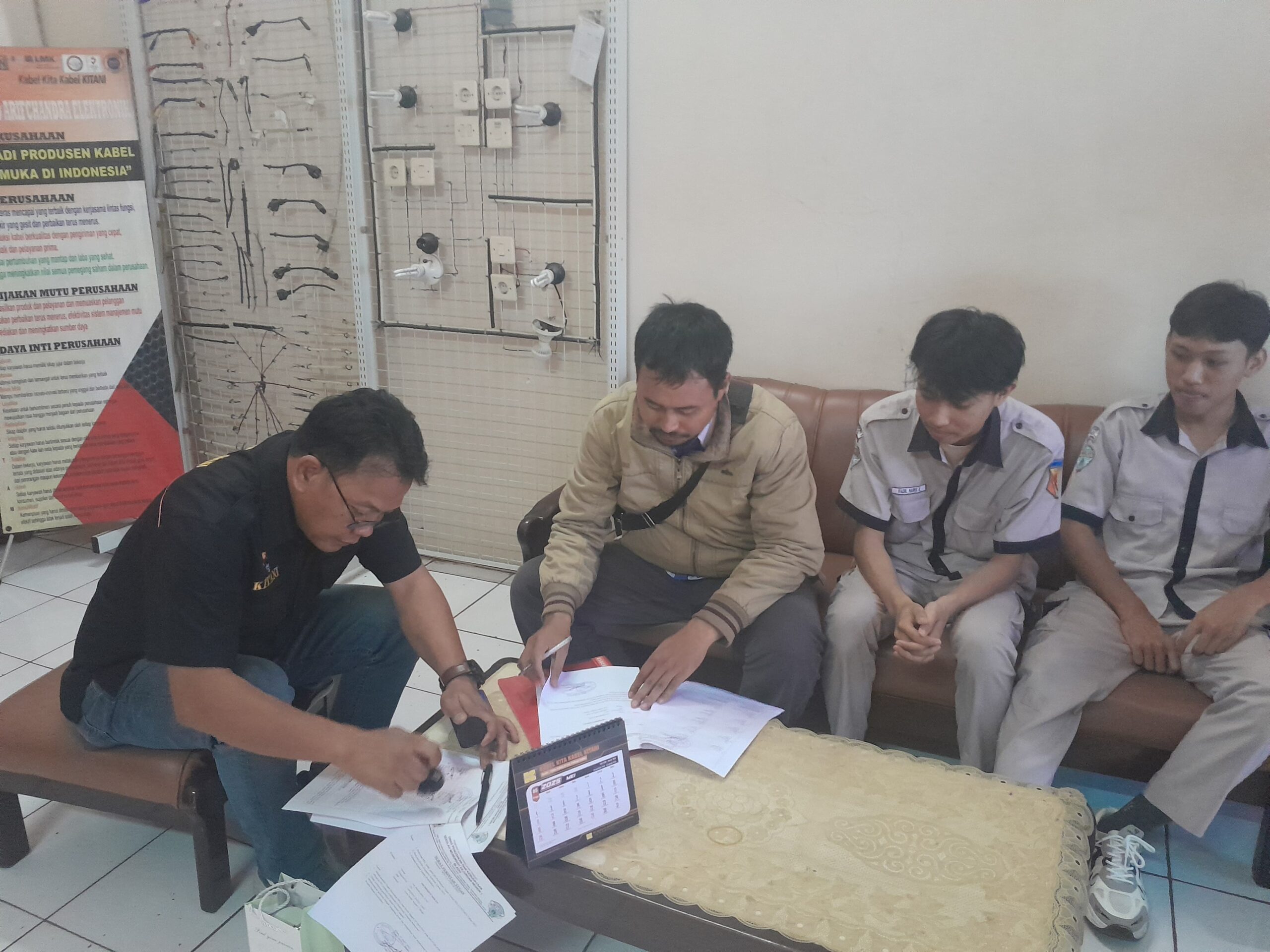 Jurusan TITL SMK Negeri 1 Blado melaksanakan Praktek Kerja Lapangan (PKL) di Pabrik kabel merek Kitani ini yang mana perusahaan tersebut bernama PT. Sutanto Arifchandra Elektronik selama 4 bulan dimulai dari tanggal 2 Januari 2025 – 30 April 2025. Kerjasama bidang PKL ini merupakan pertama kalinya, dan jurusan TITL SMK Negeri 1 Blado menempatkan 4 siswa yang terdiri dari 2 laki-laki dan 2 perempuan di pabrik kabel merek Kitani. Pak Ari Mardiyanto selaku guru pembimbing PKL mereka melaksanakan Monitoring PKL di hari Rabu, 26 Maret 2025. Monitoring PKL ini meliputi kedisplinan siswa serta kehadiran siswa dalam jalannya program PKL.