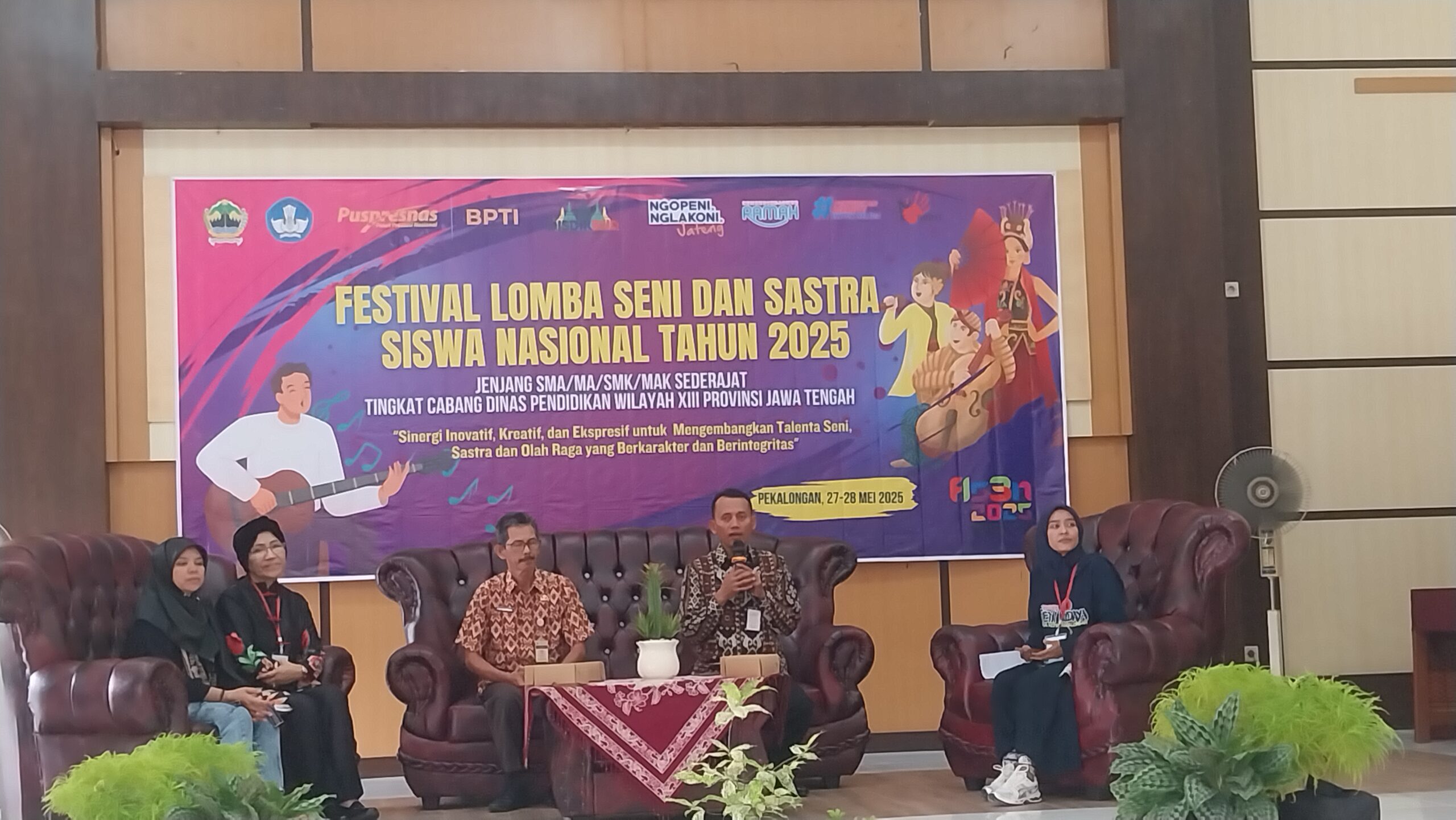 Festival Lomba Seni dan Sastra Siswa Nasional (FLS3N) Tahun 2025 merupakan ajang tahunan yang diselenggarakan oleh Kementerian Pendidikan, Kebudayaan, Riset, dan Teknologi untuk menumbuhkan semangat berkompetisi di bidang seni serta mengembangkan bakat dan kreativitas siswa. Pada tahun 2025 ini, bertepatan dengan Hari Selasa 27 Mei 2025 kami para Pendamping Lomba dari SMK N 1 Blado yaitu saya sendiri Rif’atun Nikmah, S.Pd beserta Ibu Herna Triyoga, S.Pd, Ibu Ndila Mirqoturrohmah, S.Pd, dan Bapak Syahrul Bagas H, S.Pd berangkat menuju SMA Negeri 1 Pekalongan yang dipercaya sebagai tuan rumah pelaksanaan FLS3N tingkat Cabdin Wilayah XII Provinsi Jawa Tengah.