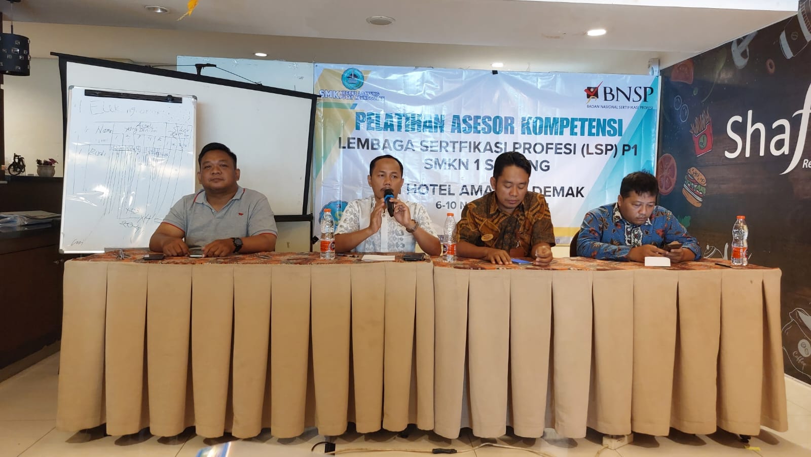 Selasa, 5 November 2024 kegiatan Pelatihan Asesor Kompetensi dan Real Asesmen Asesor Kompetensi dibuka pukul 08.00 di Ruang Meeting Hotel Amantis Demak yang berlokasi di Jalan Lingkar Demak No. KM 24 Jogoloyo Wonosalam Demak. Kegiatan dibuka oleh Kepala Sekolah SMK Negeri 1 Sayung Demak dan Kepala Cabang Dinas II Dinas Pendidikan dan Kebudayaan provinsi Jawa Tengah.