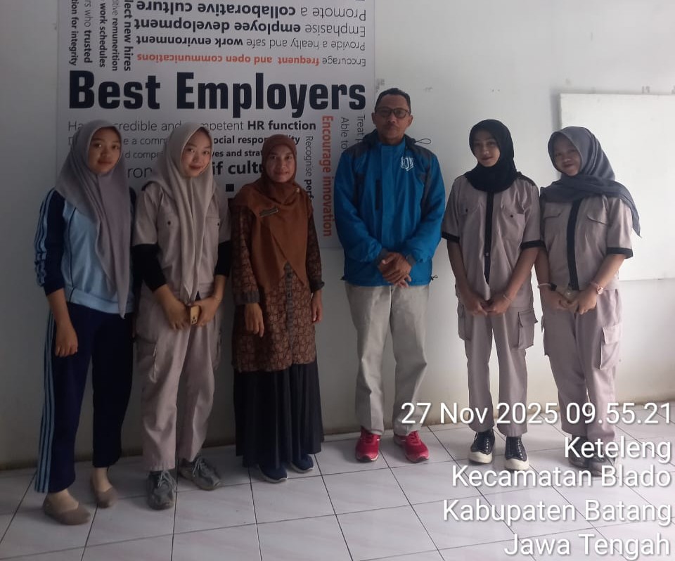 Kegiatan penarikan praktek kerja lapangan (PKL) siswa SMK Negeri 1 Blado jurusan Teknik Ketenagalistrikan di PT. Pagilaran Batang dilaksanakan pada Kamis, 27 November 2025 oleh guru pembimbing, Anni Ratnaningsih.