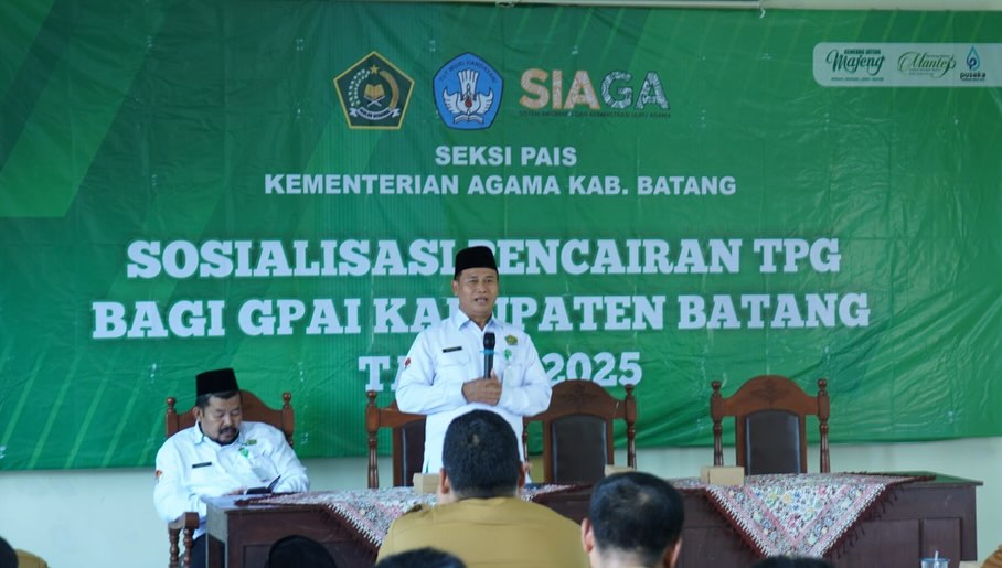 Pada hari Rabu, 22 September 2025, telah dilaksanakan kegiatan Rapat Sosialisasi Pencairan Tunjangan Profesi Guru (TPG) PAI Kabupaten Batang. Acara tersebut berlangsung di Aula Kemenag Kabupaten Batang dan dihadiri oleh perwakilan guru PAI dari berbagai jenjang pendidikan. Para peserta hadir tepat waktu dan menunjukkan antusiasme terhadap informasi yang akan disampaikan. Suasana rapat sejak awal berlangsung tertib dan kondusif.