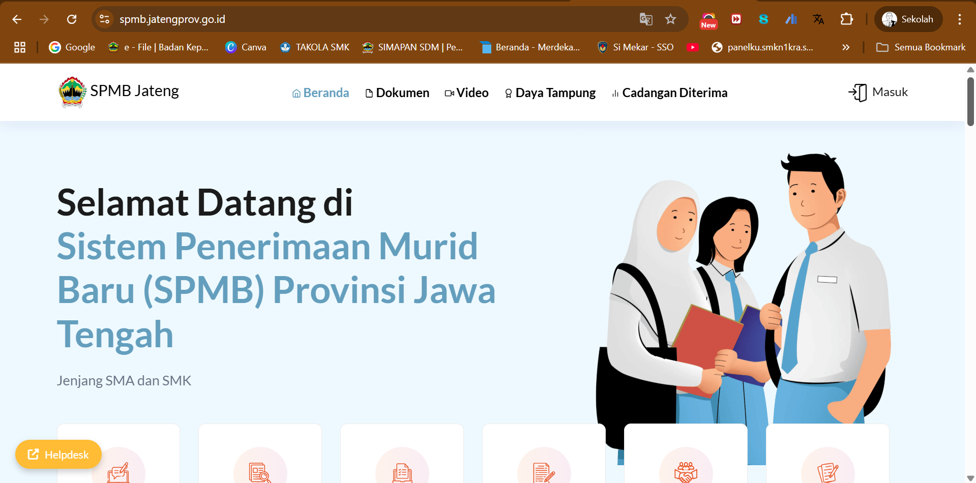 SPMB 2025 adalah proses seleksi peserta didik baru yang dilaksanakan secara daring dan luring, mengacu pada Keputusan Gubernur Jawa Tengah Nomor 100.3.3.1/135 Tahun 2025 serta Nota Dinas Disdikbud Provinsi Jawa Tengah Nomor 400.3.1/00472/DISDIKBUD/V/2025 tentang perubahan petunjuk operasional penyelenggaraan SPMB. Seleksi mencakup berbagai jalur seperti domisili, afirmasi, perpindahan orang tua, dan jalur prestasi akademik maupun non-akademik.