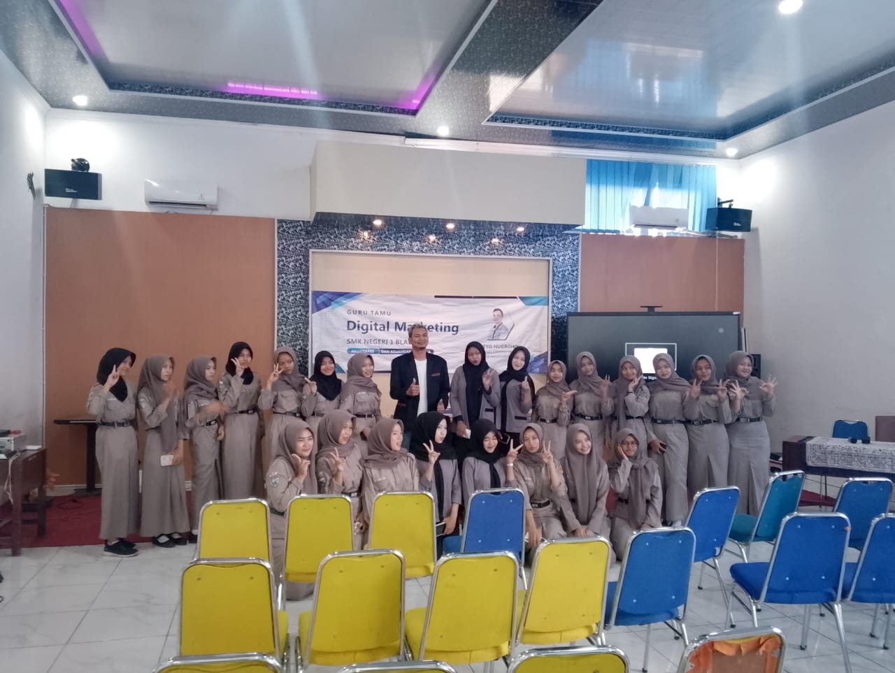SMKN 1 Blado Jurusan Akuntansi dan keuangan lembaga, mendatangkan guru tamu dari Khadeejah Nugroho Grup dari Pekalongan memberikan wawasan baru tentang digital marketing yang sangat mudah dan gampang dilakukan. Dengan HP yang bisa kita pake di kehidupan sehari-hari, Melalui media sosial yang ada Twiter, tiktok, youtube, facebook dan lain- lain. jadi kesimpulannnya hp jangan hanya digunakan sebagai hiburan saja tetapi bisa buat ide jualan atau usaha.