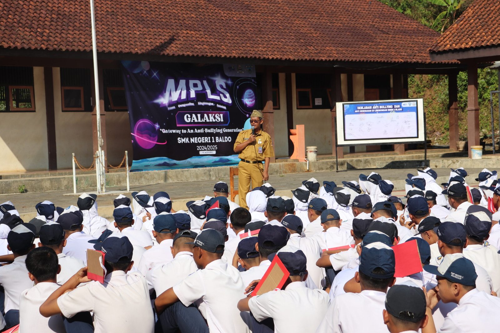 Upacara dengan pembina dari Kepala Kepolisian Sektor Blado Bapak AKP Hery Rubiono berlangsung dengan khidmat. Kegiatan diawali dengan Pengibaran Sang Merah Putih dengan Petugas Upacara dari Satuan Pleton Khusus Paskibraka SMK Negeri 1 Blado di bawah bimbingan Bapak M. Yusuf Khambali. Kemudian acara dilanjutkan dengan pembukaan kegiatan MPLS (Masa Pengenalan Lingkungan Sekolah) secara simbolis oleh Pembina Upacara Kapolsek Blado AKP Hery Rubiono dengan menyematkan tanda peserta kepada peserta MPLS dan gunting pita pembukaan backdrop kegiatan MPLS. MPLS kali ini mengusung tema “Galaksi” Gateway to an Anti-Bullying Generation yang bisa diartikan “Gerbang Menuju Anti Bullying” sehingga diharapkan generasi ini menjadi sebuah permulaan dalam Anti Bullying dan Anti Kekerasan di lingkungan sekolah yang bersifat berkelanjutan.
