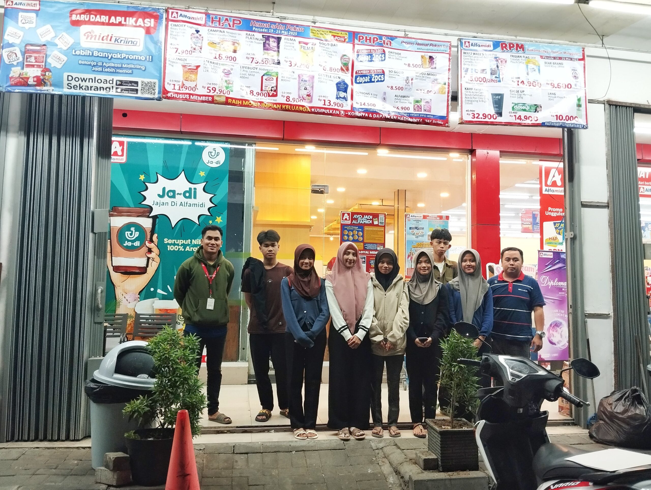 Pada hari selasa, 20 mei 2025 saya di tugaskan untuk mengantar anak calon pencari kerja yang sudah mendaftar pada BKK SMK N 1 Blado untuk mengikuti undangan training di Alfamidi Super Gajah Raya di gayamsari, semarang karena undangannya jam 14.00 WIB siang maka kami melakukan pemberangkatan untuk 7 peserta training alfamidi pada jam 12.00 siang. Kita perjalanan melalui tol yang masuk di pintu tol Weleri dan keluar di gayamsari semarang masuk ke jalan menuju kawasan masjid Agung jawa tengah dan sampailah di tempat training di Alfamidi Super yang bertempat di jalan Gajah Raya No.33, Gayamsari, Kota semarang, Jawa Tengah alhamdulilah serombongan sampai di pukul 14.00 WIB. Langsung kita melakukan regristrasi di petugas bagian penerimaan sekaligus trainer Alfamidi Super yang bernama kak klemens, selanjutnya perkenalan di ruang training , pembukaan dan serah terima peserta traning oleh BKK SMK N 1 Blado dengan tim Trainer Alfamidi Semarang.