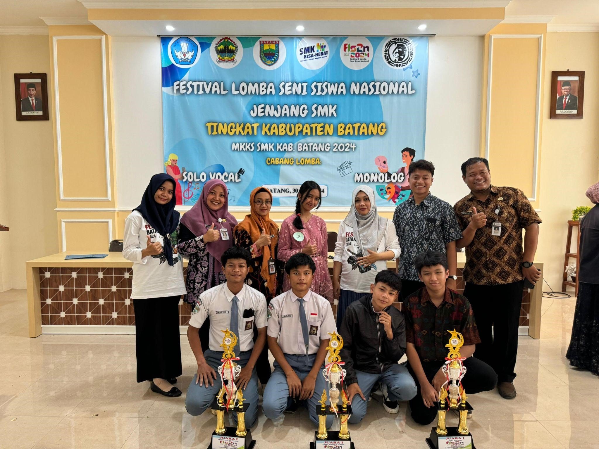 Cabang lomba Cipta lagu diraih oleh SMK N 1 Batang, cabang lomba Musik tradisi diwakilkan oleh SMK N 1 Warungasem, cabang lomba Monolog diraih oleh SMK N 1 Kandeman, cabang lomba solo vokal diraih oleh SMK N 1 Batang, cabang lomba Musik tradisi diwakilkan oleh SMK N 1 Warungasem dan cabang lomba Seni kriya diwakilkan oleh SMK N 1 Kandeman. Tim FLS2N kabupaten Batang siap menuju FLS2N 2024 tingkat cabang dinas XIII Provinsi Jawa Tengah.
