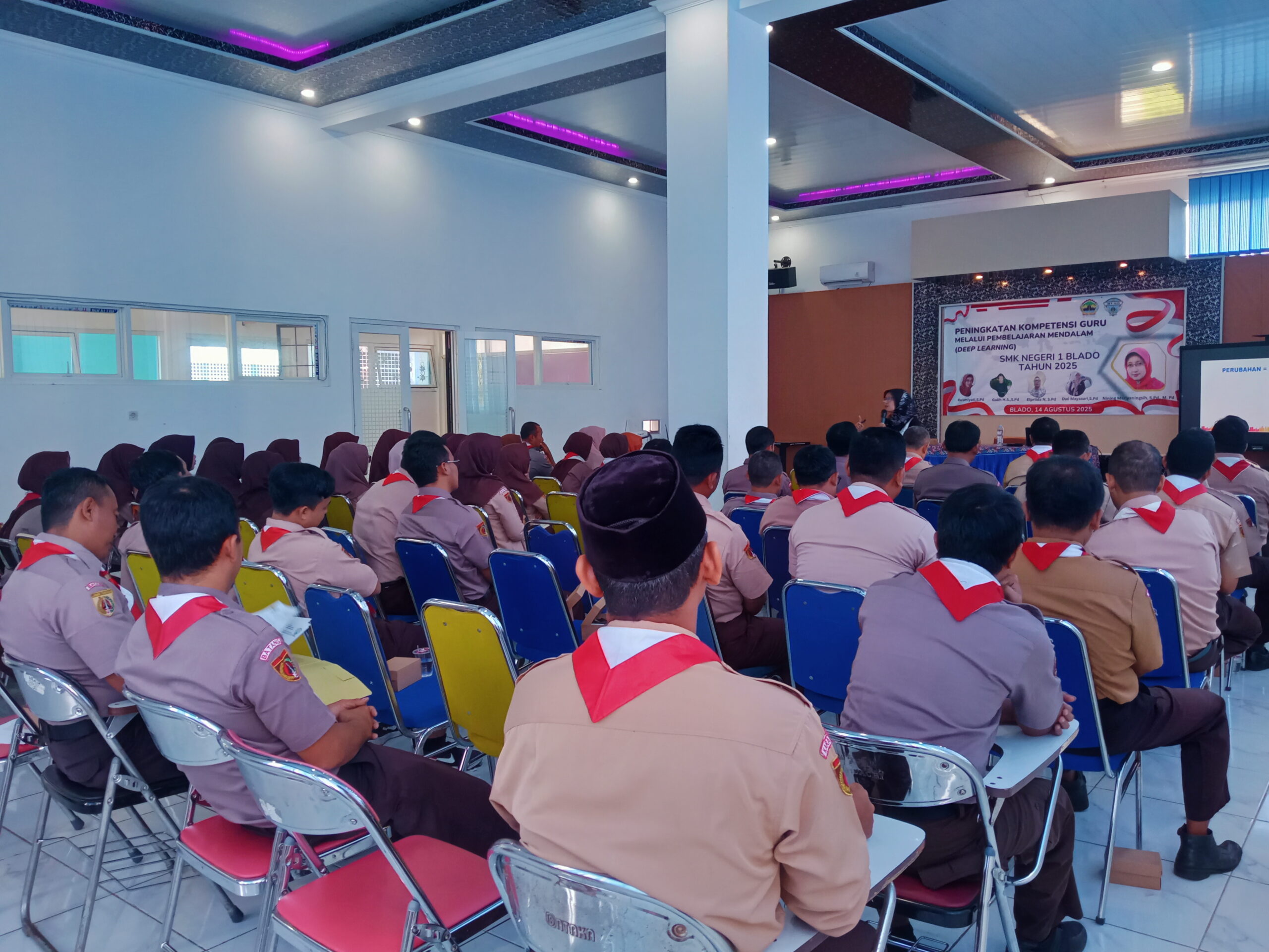 Blado, 14 Agustus 2025 – SMK Negeri 1 Blado menyelenggarakan Workshop Pembelajaran Mendalam (Deep Learning) dengan tema “Peningkatan Kompetensi Guru Melalui Pembelajaran Mendalam”, pada hari Kamis, 14 Agustus 2025 bertempat di Aula SMK Negeri 1 Blado.